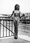 Réard kalte inn pressen til en oppvisning ved et basseng i Paris, der han viste frem en langbent skjønnhet med minimal bekledning.