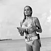 URSULA ANDRESS, 1962: Sveitsiske Ursula Andress steg opp av vannet som Honey Ryder i den aller første James Bond-filmen, «Dr. No». Hun hadde både konkylie, kniv og en aksent som var såpass ille at stemmen måtte dubbes – men først og fremst hadde hun en hvit bikini. Scenen er blitt ikonisk, og bikinien er i flere kåringer utropt til verdens mest berømte. Andress solgte den på auksjon for 35 000 pund i 2001. I originalromanen til Ian Fleming hadde Honey Ryder bare på seg beltet, for øvrig.Getty Images