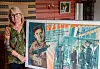 BLIKKFANG: Kyllingens datter, Åse Storhaug Hole, viser frem den franske versjonen av filmplakaten hvor Hans Storhaug var frontfigur.