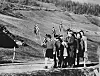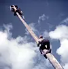 VÅGHALSER: Det gjaldt andre lover i 1954, så det var helt greit at barna klatret opp stolper for å vinne premien i toppen, selv om de risikerte å slå seg fordervet. Her i Bergen.foto: NTB