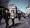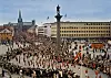 TRONDHEIM: Trønderne er ualminnelig stolte av aksen fra Olavsstatuen (på torvet) til Nidarosdomen. Det er vanskelig å få en flottere ramme rundt 17. mai-toget. Her en gang på 70-tallet.wikipedia
