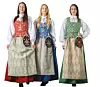 SØR-ØSTERDALSBUNAD MED LUE: Denne bunaden ble utarbeidet av Husfliden i Oslo i 1955 på bakgrunn av materiale fra Glomdalsmuseets draktsamling. Bunaden fikk skjøteliv og rutete stakk. Livet ble laget i grønt eller rødt. Senere er bunaden videreutviklet, og i dag har man mange valgmuligheter blant farger og stoffer, spesielt til vesten. Skjorten fins både med og uten mansjett. Til drakten hører konelue eller pikelue i ulike stoffvarianter. Foto: Norsk Flid Husfliden