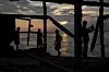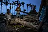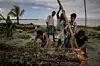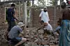En merkelig dag starter med å vasse over tidligere åkre, forbi en druknet palme og gamle strømledninger som ikke lengre fungerer. Så møter jeg en gruppe menn, barn og noen få kvinner, som hamrer løs på hva som er igjen av Bogaliparas gamle moske.