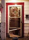 Ropene om hjelp kunne høres gjennom inngangsdøren til det hvitmalte familiehuset og ut på gaten. En tilfeldig forbipasserende stoppet og lyttet. Snart kom en nabo til. Sammen fikk de laget til en åpning i døren. En kvinne og et lite barn kom til syne.
