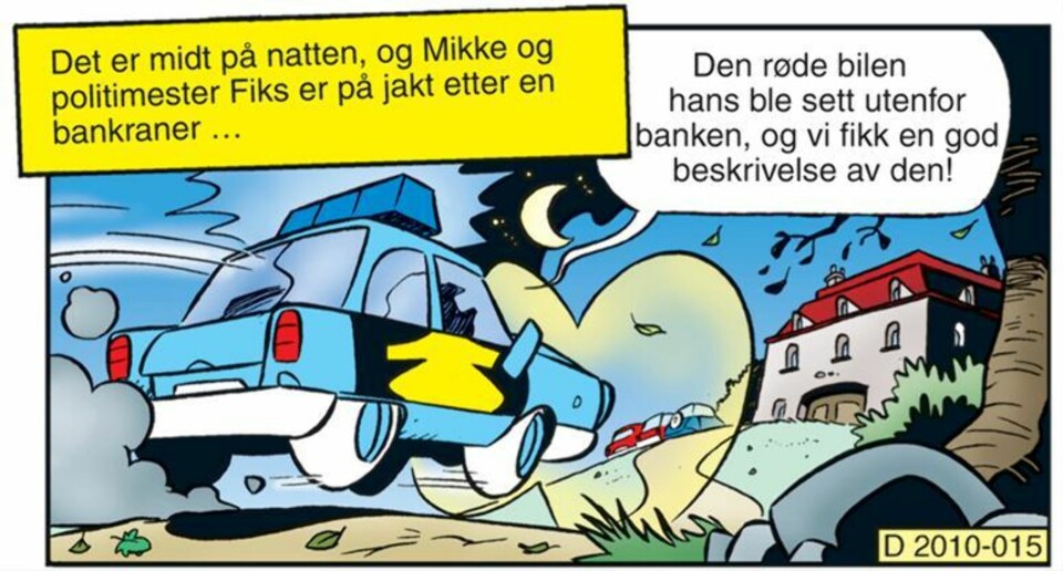 Et nytt mysteriet må løses av Mikke og politimester Fiks. En bank er ranet og etterforskerduoen er på jakt etter en rød bil som ble observert utenfor banken. Men bilen hadde ingen sjåfør? Det kan da umulig være mulig?