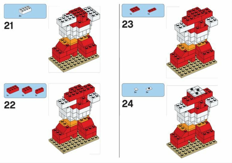 Vi har også oppskrifter som viser deg hvordan man bygger Donald, Dolly og Mikke i Lego.I denne saken kan du lære deg å bygge Dolly i Lego. Finn fram klossene, og klikk deg gjennom bildegalleriet steg for steg.