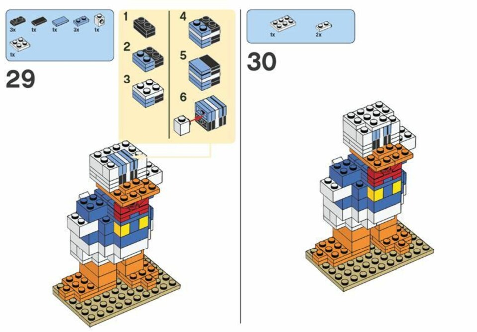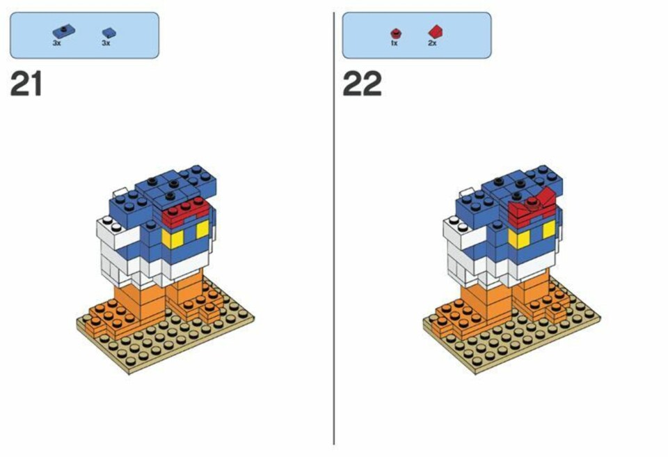 I denne saken kan du lære deg å bygge Donald i Lego. Finn fram klossene, og klikk deg gjennom bildegalleriet steg for steg.