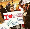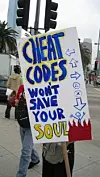 Man får en litt "rablende gal dommedagsprofet"-følelse ved synet av plakatbærere, så hvorfor ikke ta'n helt ut og være litt kreativ med slagordene sine når man først er i gang? Man kommer mye lengre med en liten dose humor, enn beinharde, kalde fakta i dagens samfunn.