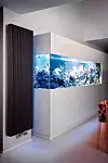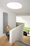 Konvektorer i gulv egner seg spesielt godt foran store vindusflater fordi de ikke stenger for utsikten. Konvektorer blir raskere varme enn radiatorer, og på grunn av ny teknikk trengs det mindre vann for å varme den opp. Det gir enda større designmessige muligheter.FOTO: Oak, Lyngsson