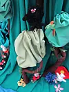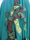 I en drøm så Anita for seg at slepet måtte ligne et stort blad. Anita visste at Ina liker Mummikopper. Ergo ble tematikken i slepet Mummidalen. Hele kjolen ble sydd for hånd.