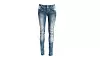 Når baklommefokuset er etablert, kan man kaste seg over alle de andre mulighetene. For at man kan gjøre mye med denim, kommer tydelig fram i årets jeansmote. Her peker trendpilene i mange ulike retninger samtidig. Med andre ord kan alle finne noe de liker, uansett stil. Rocka jenter i jeans tyter fram fra mange kolleksjoner, blant annet hos Chanel, Balmain og Ralph Lauren. Balmains rockeprinsesse har bukser med oppbrettede bein, sko med høye hæler og topp av korsettypen. Sett på en bikerjakke, og hun blir kulest i byen.