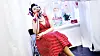 - Ideen er å gi assosiasjoner til en husmor som akkurat har hengt opp klærne til tørk. Klærne er i lyse toner, for å gi et solbleket inntrykk, sier merchandiser i KappAhl, Annelie Brunsvik, der hun tripper mellom cupcakes og blomstrete forklær.