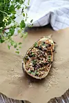 Bakt aubergine med byggryn og soltørket tomat