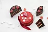 Delfiakaker i porsjonsformer er små sjokoladebomber fylt med godteri og overraskelser, perfekt til kaffen. Prøv deg på et rødt marsipanlokk; det gjør overraskelsen inni litt større.