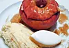 En lettvint, men elegant måte å servere epler i middagsselskap, er å bake dem hele: Skjær at “hatten”, ta ut kjernen, fyll det med godsaker, gjerne tørket frukt, og sett dem i ovnen. Litt senere har du nydelige, skrukkete epler med mykt skinn som passer utmerket sammen med iskrem.