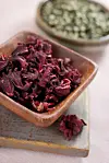 - Tørkede hibiscusblomster. Brukes i den egyptiske saftdrikken karkade.