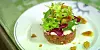 Det aller første som kommer på bordet denne kvelden er en kul laksetartar. Tartaren serveres med krutonger, dressing og frisk salat.