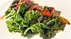 Sammen med plenty grønnkål serveres det lammekjøtt og karamelliserte gulrøtter. Og hvitløken er fermentert i 40 dager på 60 grader. Til sammen blir dette et av kveldens høydepunkt. Det er jammen ikke lett å avgjøre om det er gulrøttene eller lammekjøttet som smaker best her.