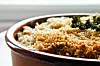 Bland squash med god sopp, legg på en ikke-søt crumbleblanding og bak det i små, ildfaste former. Resultatet er en nydelig, restaurant-verdig forrett.