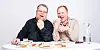 PØLSETESTERNE: Pensjonert pølsemaker Tore Teigen og pasjonert pølseelsker Ivar Kvistum smakte seg gjennom 11 forskjellige wienerpølser og kåret en vinner.Foto: Tore Fjeld