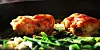 Det er godt å tygge på kyllingklubber. Her får de selskap av vårløk i stekepanna. Og det blir fest når mandlene, soyasausen og honningen kommer.