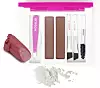 Kremrouge gir naturlige roser i kinnene. Legg den på eplekinn og myk ut overgangene med fingrene. Markerte øyenbryn er viktig for denne looken. Legg brynskygge med pensel, gre formen på plass og avslutt med en bryngelé.