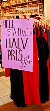 Butikkene ønsker å bli kvitt forrige sesongs varer for å få plass til det nye, og setter derfor ned prisen såpass mye at kundene villig hjelper til med å tømme butikkene.