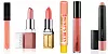FERSKENLEPPER: Lipgloss i fargen Pearly Peach (kr 175, Nilens Jord), Pop Lip Colour and Primer i fargen Nude Pop (kr 210, Clinique), Beautiful Color Lipstick i fargen Sunburst (kr 260, Elizabeth Arden), Lip Shimmer i fargen Apricot (kr 119, Burt`s Bees) og Patentpolish Lip Pencil i fargen Revved Up (kr 180, MAC).Produsentene