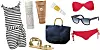 FRA VENSTRE: Solbrille fra Cubus (kr 79), veske fra H&M (kr 99kr), badedrakt fra Topshop (kr 264), hatt fra Topshop (kr 208) og Dior Bronze High Protection (kr 257).Foto: Strawberrynet.com, produsenten