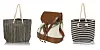 FRA VENSTRE: Brunstripete veske fra Nelly (kr 99), trendy ryggsekk fra Topshop (kr 292), marinestripete veske fra Nelly (kr 99).Foto: produsenten