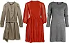 HVERDAGSKJOLER: Avslappet skjortekjole fra Vanessa Bruno for LaRedoute, kr 1199. I rødfarget, myk og feminin chiffon fra Indiska, kr 499. Grå herlig strikkekjole fra Indiska, kr 399.Foto: Produsentene