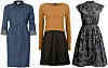 HVERDAGSSKJOLER: Superanvendelig jeanskjole fra MQ, kr 499. Trendy og ofarget fra Cubus, kr 299. Feminin med vidde i skjørtet og skikkelig Mad Men-følelse fra Lindex, kr 249.Foto: Produsentene