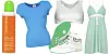 FRA VENSTRE: Vannfast solkrem fra Lancaster Sport (kr 285), T-skjorte fra Adidas (kr 450), basketsko fra Reebok (kr 1200), sports-bh fra Rönisch (kr 299), kjole fra Gant (kr 1100).Foto: Svein-Erik Tøraasen/Blueline Studio