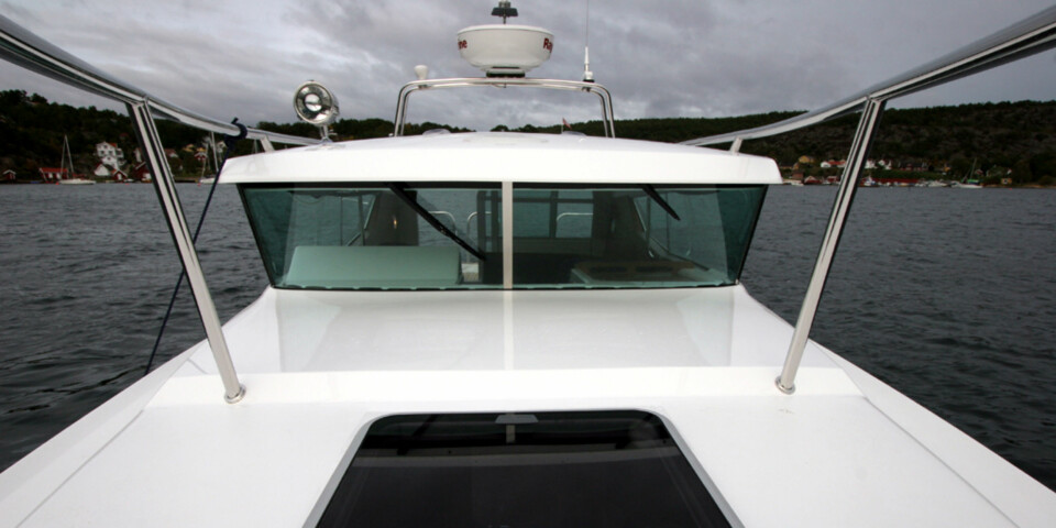 Vi kan ikke vente - men tar båten ut på en tur med det samme. Med en splitter ny D6 på 370 dieselhester under det lille akterdekket, mangler det ikke på dreiemoment i denne skuta. Men alle hingstene kommer da også godt med i denne høyst kraftkrevende konstruksjonen. Med et avmålt brøl er vi oppe i planefart, og knopene kommer raskt på telleverket.