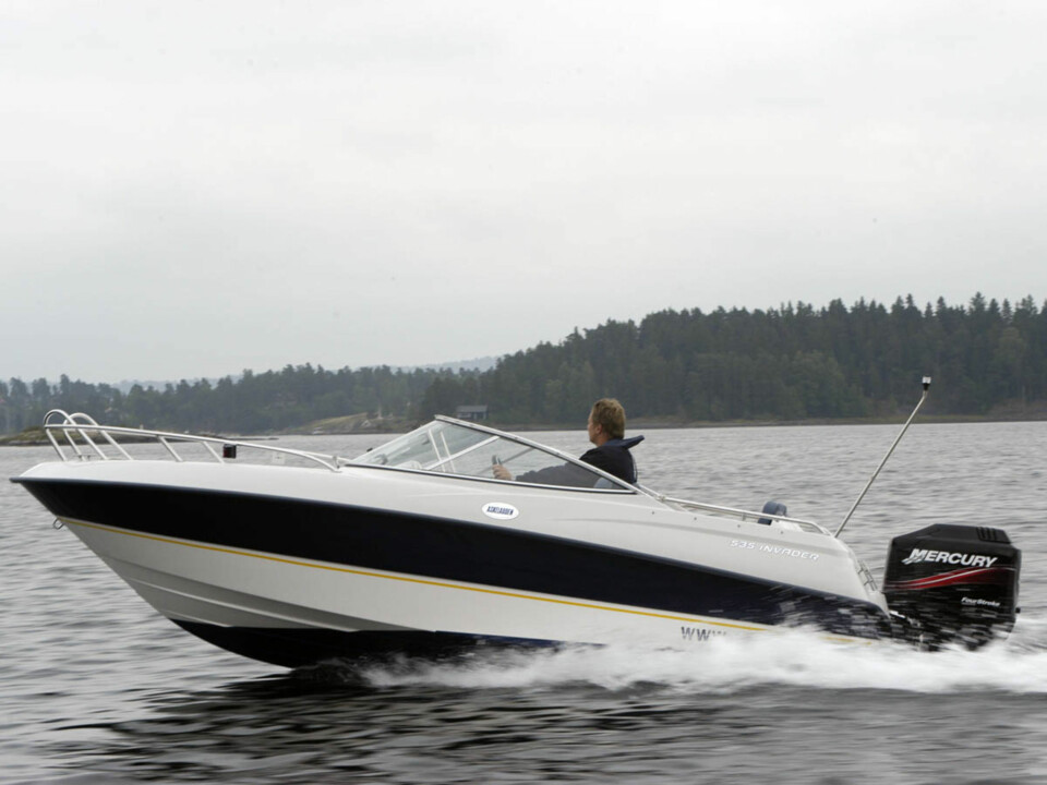 535 Invader er blant annet lett å borde, med kraftig pulpit å holde i, luke i vindskjermen og steg ned til cockpiten. I tillegg har den ett trinn på hver side av akterbenken, som gjør det lettere å gå om bord. Etter å ha flyttet litt rundt på putene, får vi kalesjen ned i kalesjegarasjen og kan legge fra land.
