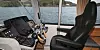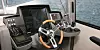 Båten er utstyrt med Mercruisers nye Zeus-drev, og med det følger helt nye motorkontroller jeg aldri har sett tidligere. Blanke og fremmede. Motorkontroller er motorkontroller og ikke noe stort å skrive hjem om, men her er det mange ukjente knapper, i tillegg til en kraftig "joy-stick" som er betydelig større enn den Volvo Penta bruker på sin IPS. Enda et bryterpanel til motorene sitter til høyre, og her er det enda flere knapper å finne betydningen av.