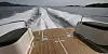 Fribordet i forskipet er ganske høyt og i baugen ligger sidene kraftig utover - såkalt "flare" - og det bør gi en tørr båt. Skulle det komme sprut eller grovere sjø over forskipet, vil vannet raskt følge sidedekkene akterover og kjapt dreneres ut over akterdekket og badeplattformen.