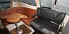 Hadde man sløyfet babord dør, kunne man utformet sittegruppen annerledes. Her er det nå en L-formet sofa, og nedgangen til akterkabinen tar en del plass. Derfor er sittegruppen neppe god for mer enn fire.