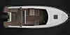 Dekksinnredningen i daycruiseren skiller seg på den andre siden ikke vesentlig fra hva vi ser hos andre daycruiserprodusenter, med en stor U-sofa rundt et bord midt i salongen som viktig innslag. Fremste den av salongen har ellers fått en vippbar pute som kan gi to ekstra seter. Designet er det Gasper Peternelj som står for.