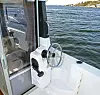 Heldigvis finnes det en løsning på problemet. 555 PH kommer nemlig med utvendig styring (ekstrautstyr 7300 kroner). Under blå himmel er derfor ikke valget vanskelig - resten av testen kjøres fra akterdekket.