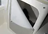 Hytta er overraskende stor for båtstørrelsen. Både bredden, lengden og takhøyden imponerer, samtidig som smarte løsninger gjør det enklere å utnytte volumet til fulle. Ved å skyve inn to plater mellom de to setene dannes et tredje sete med ryggstøtte, og ved hjelp av et par plater med tilhørende puter blir nær sagt hele arealet i hytta gjort om til seng. En seng med god plass til to.