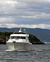 Så snart vi er ute i åpent farvann cruiser Sagaen elegant i 17-18 knop, også i de største bølgene. Fribordet i forskipet er ganske høyt og båten går tørt i dette marsjfarområdet. Skroget skjærer mykt og komfortabelt gjennom bølgene. Ingen slag og ingen påtrengende skramlelyder fra innredningen.