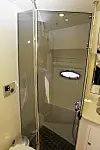 Her er det også stort dusjhjørne med glassvegger, stor stålvask, godt med skap og stor takhøyde. Småskap og barskap er plassert om styrbord for trappa til salongen og generelt er all plass utnyttet til små og store stuverom.