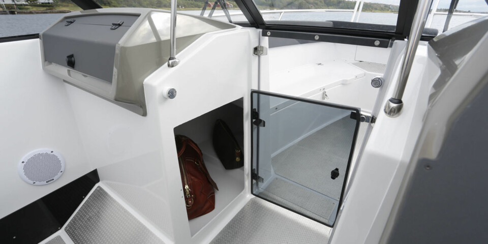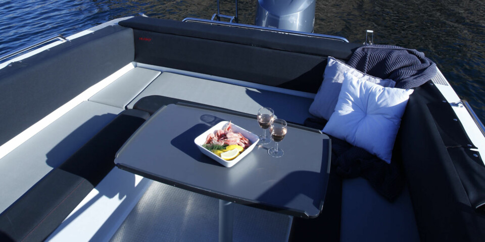 Med nesten 2,5 meters bredde virker plassen om bord i den største R8-modellen enorm. Her er det også en L-sofa forut. Bak vindskjermene finner du to pilotstoler og en stor U-sofa, sannsynligvis med nok plass til å huse syv av de ni personene du kan ta med på tur.