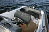 Akterbenken gir fin plass for fire, men kunne med fordel vært noe dypere for de langbente. Da er vi mer fornøyde med ståbenken ved førerposisjonen, som gir utmerket støtte og som kan felles fremover dersom man ønsker å sitte vendt mot akterbenken. Den teakpyntede badeplattformen er usedvanlig velformet for en DC-båt å være. Her bak finner vi en stor badestige, to fine stuv for tauverk samt tilstrekkelig med beinplass til at man ikke snubler i motor og kabler. Ferdig duket for vannsport, med andre ord.
