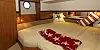 Foran i baugen finner vi masterkabinen, også den smakfullt innredet uten at den nødvendigvis byr på mer plass enn en tilsvarende stor båt. 40 Maestro har også en stikkabin, og denne overrasker oss mye mer plassmessig. Her har to relativt store enkeltsenger smeltet sammen til en gigantisk dobbeltseng som dekker nesten hele båtens bredde. Takhøyden er naturlig nok litt lav ettersom denne kabinen ligger under førerplassen og salongen.