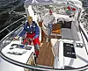 Drinkpantryet mot styrbord side har 40 l kjøleskap, vask og elektrisk grill. En liten gangvei akter leder ut på den lille men tilstrekkelige badeplattformen, hvor man aller helst vil stå ved tillegging. Vi er godt fornøyde med sidedekkene og tilgangen til fordekket - her fremme finnes plass til minst et par solende personer til.