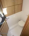Vi er noe skuffet over takhøyden på knappe 1,80 m, som går ut over de lengste her nede både under matlaging ved pantry og inne på det ellers så fine toalettet. Da er vi mer fornøyde med midtkabinen, som tilbyr en langsgående sofabenk, tilstrekkelig med stuv og en fin tversgående dobbeltkøye.