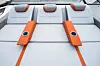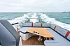 Den store «G-sofaen» akter kan selvsagt gjøres om til solseng, det er to sportsstoler for fører og copilot, samt et dobbeltsete i fartsretningen på babord side. Dermed er det plass til de 11 personene Beneteau lover godkjenning for. På hekken anbefales to stykk Suzuki DF350, noe som sørger for en toppfart i overkant av 40 knop. Drivstofftanken rommer 2x400 liter
