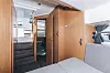 Nede i kabinen er det full ståhøyde både i hovedkabin, akterkabin og på badet. Badet har sågar separat dusjavdeling, ifølge produsenten. Sofagruppe forut kan gjøres om til dobbeltkøye, og det fine toalettrommet og en luftig midtkabin gjør at fire kan overnatte og to kan dra på langtur.